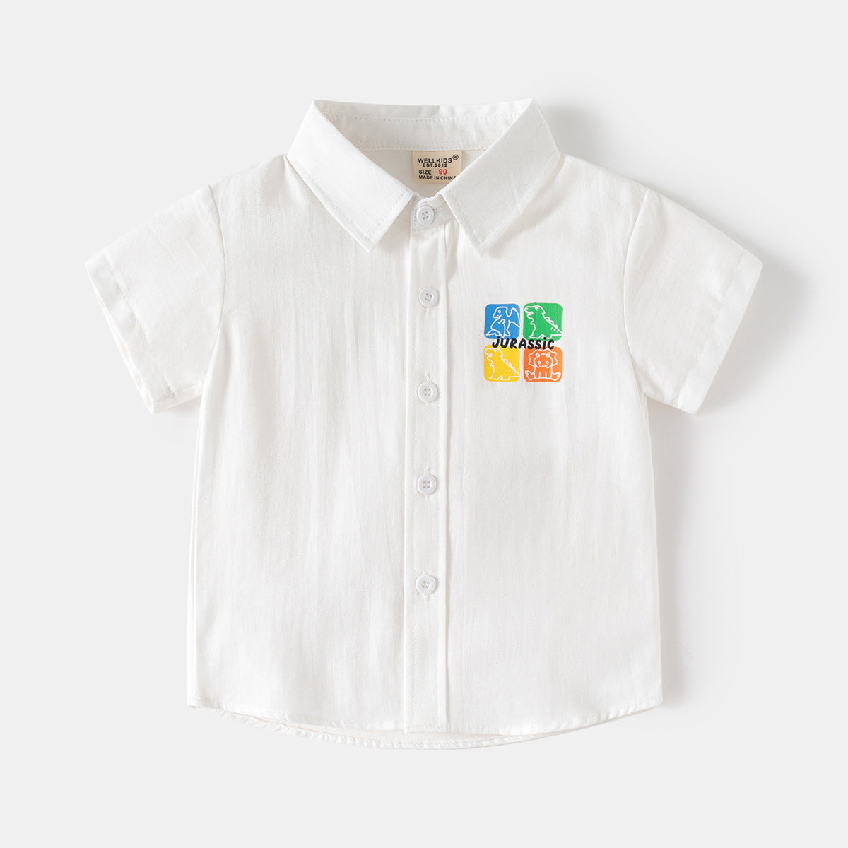 Boys' Summer Thin Cotton Short Sleeve Shirt - Korean Style Cartoon Print