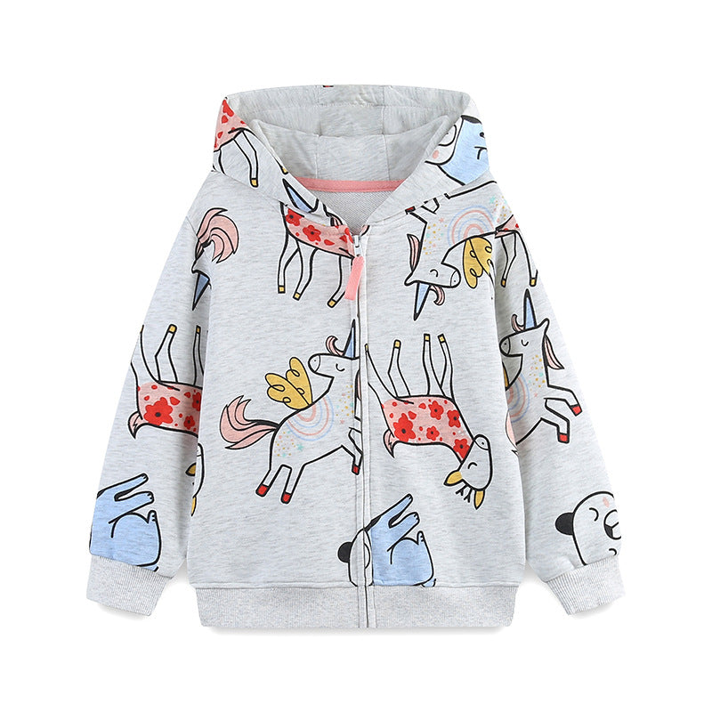 This girls’ hooded zipper jacket is a must-have trendy, comfortable, and versatile piece for your child’s autumn collection.
