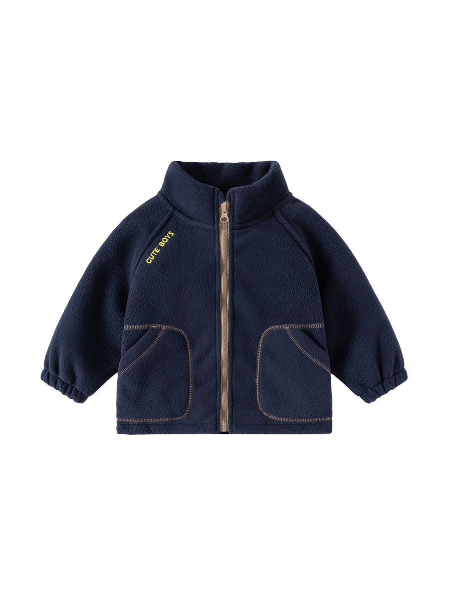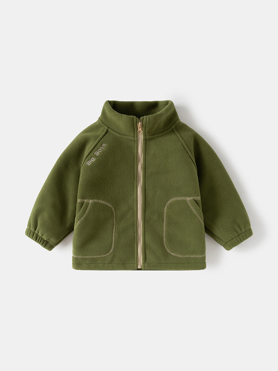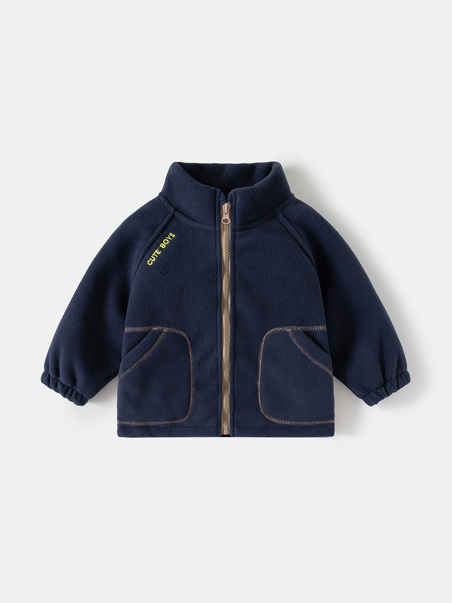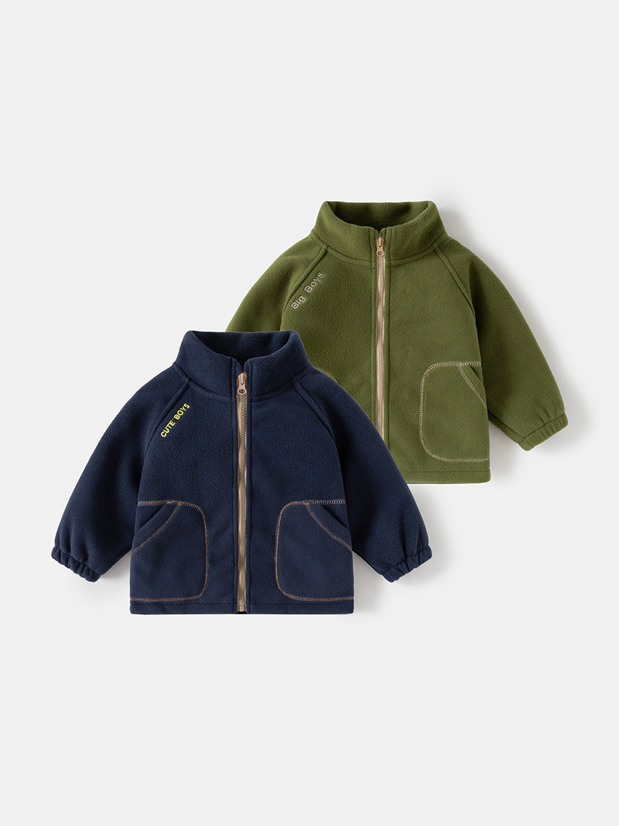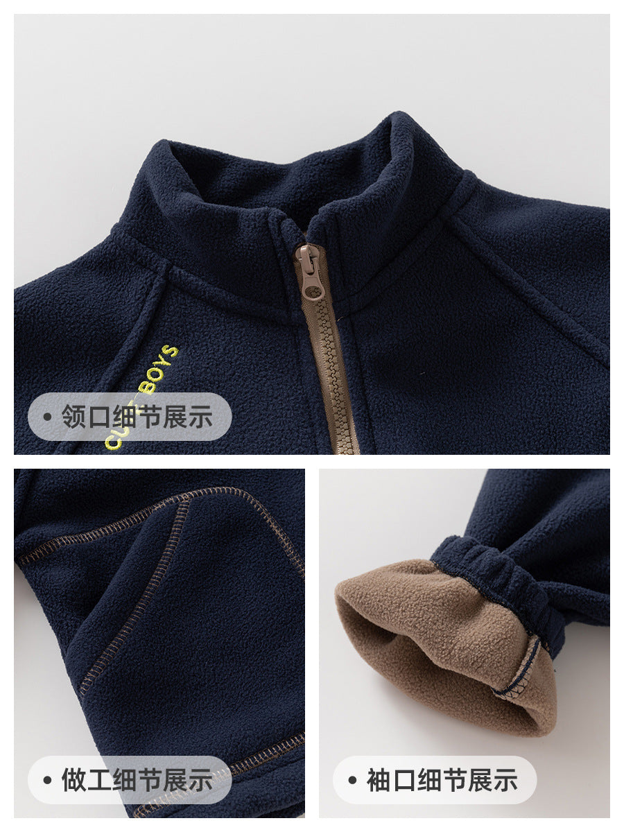 Boys' Fleece Jacket Stand Collar Casual Top 2025 Autumn Collection