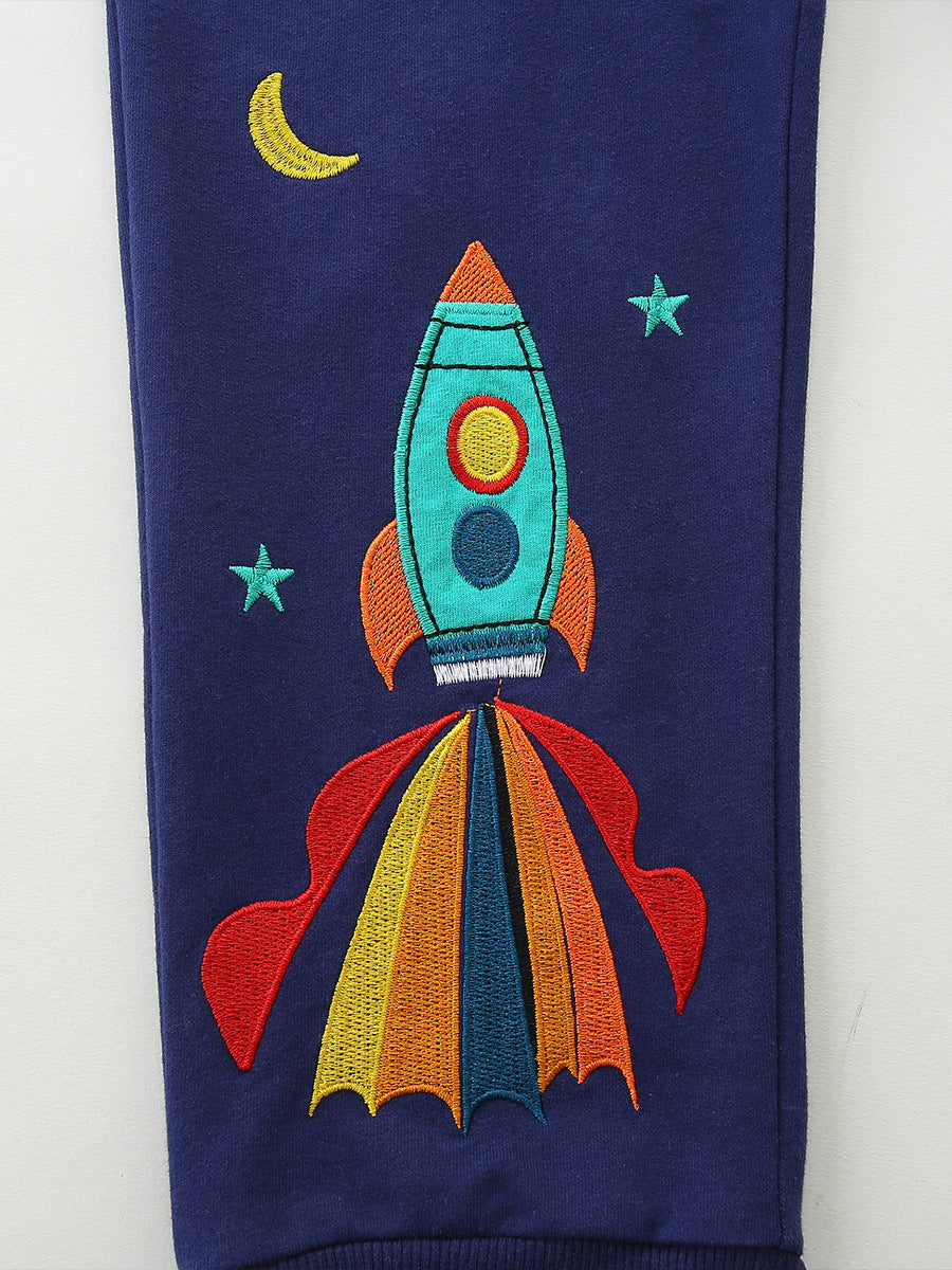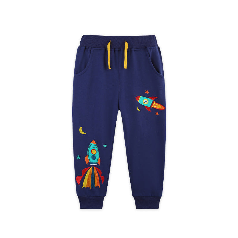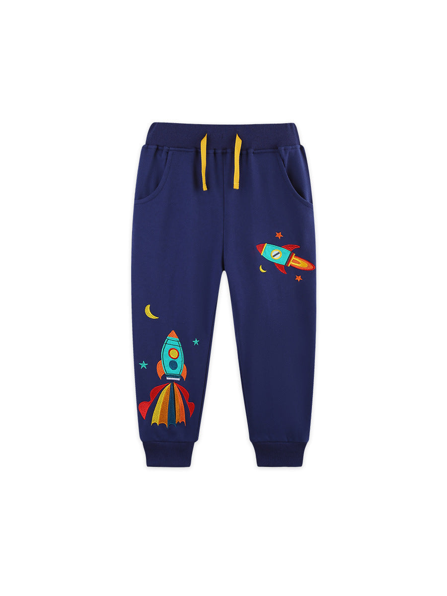 Autumn Boys Sweatpants | Rocket Embroidery Knitted Cotton Kids Pants