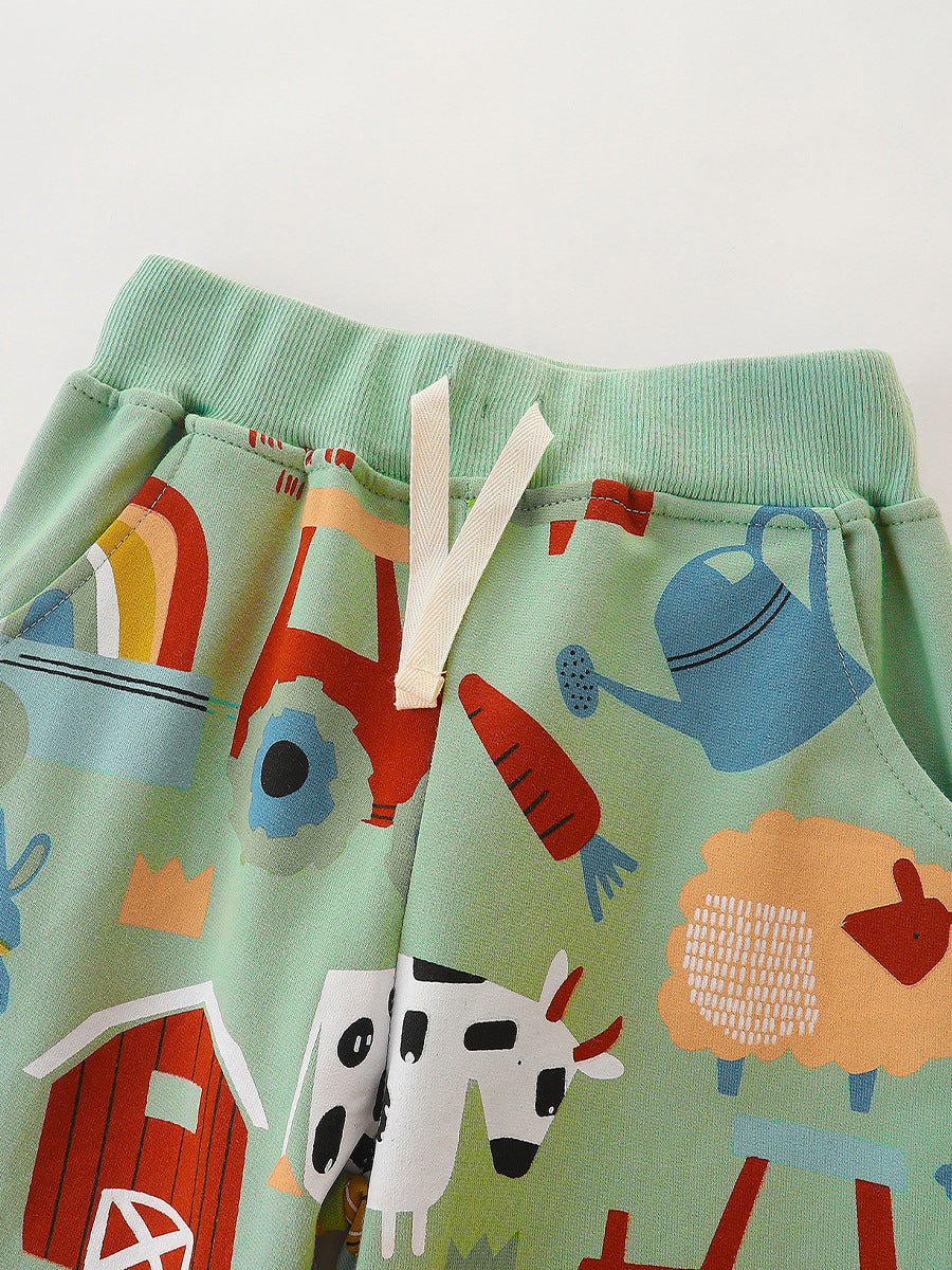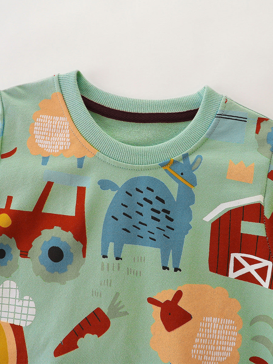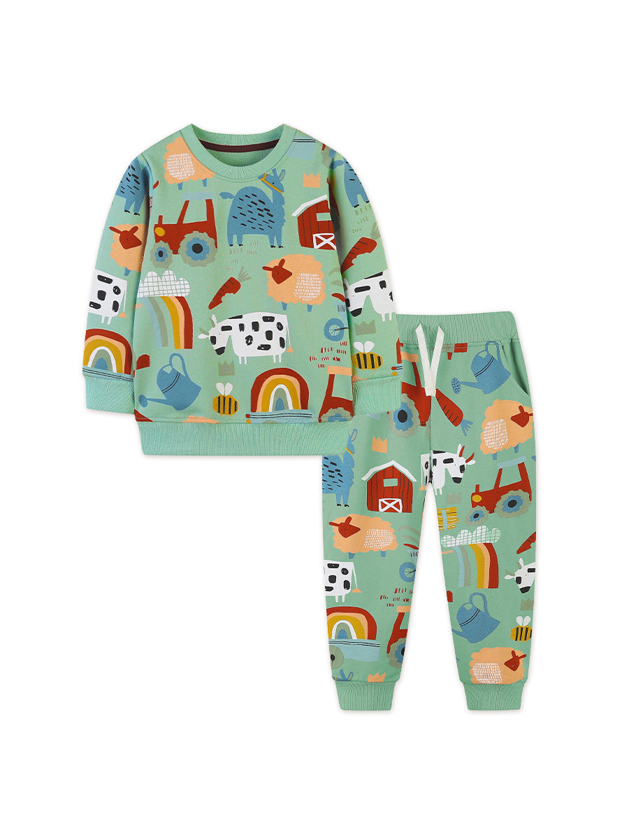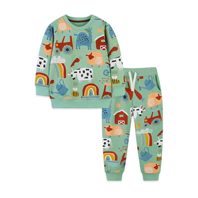 Autumn Boys Cotton Sweatshirt and Pants Set | Cartoon Print Outfit