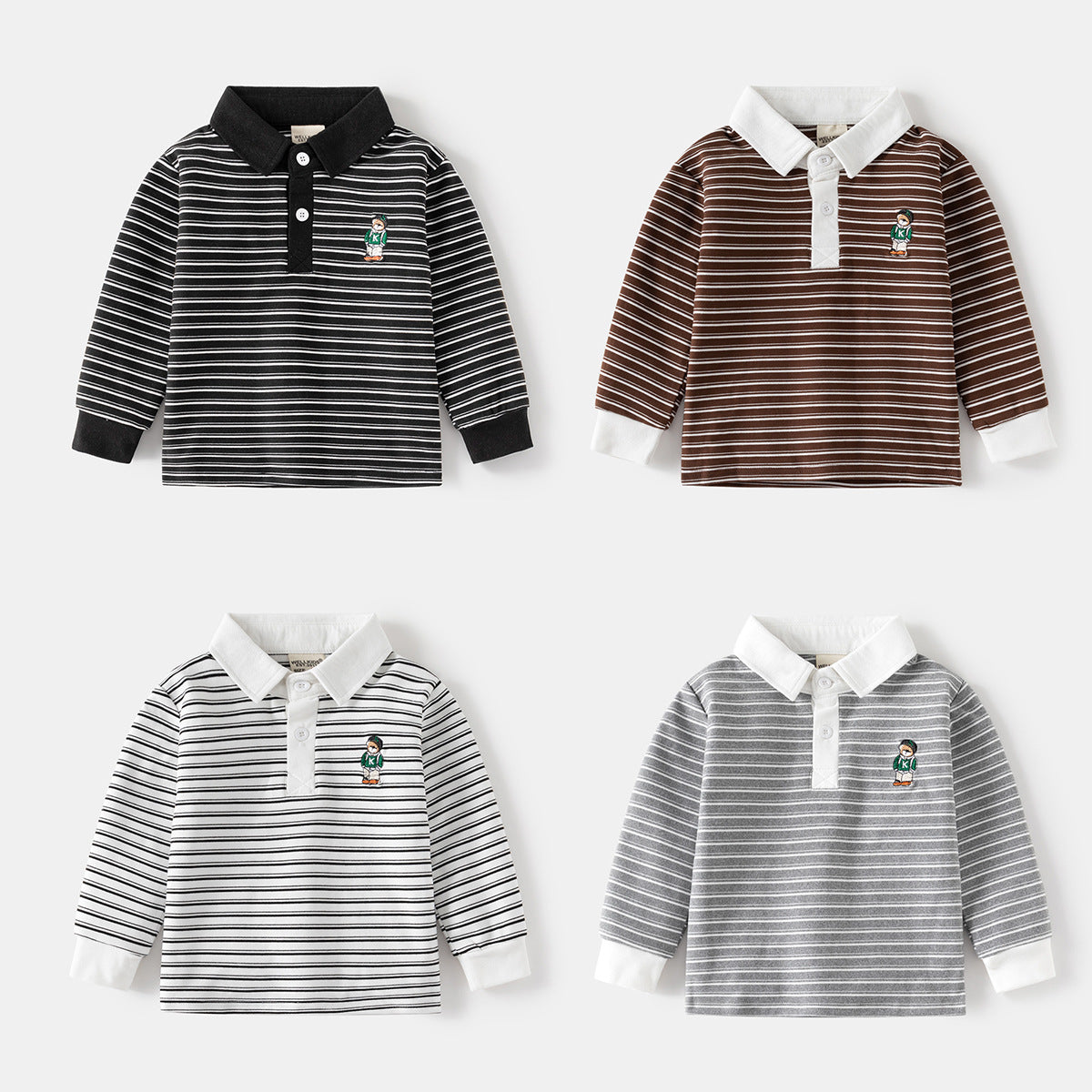 Boys' Long Sleeve Polo Shirt - Thick, Turn-Down Collar, Autumn Style