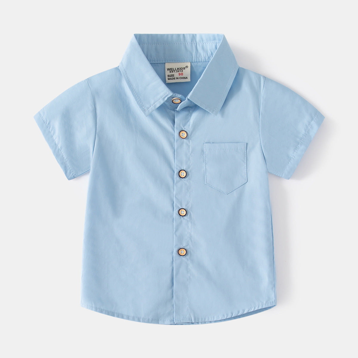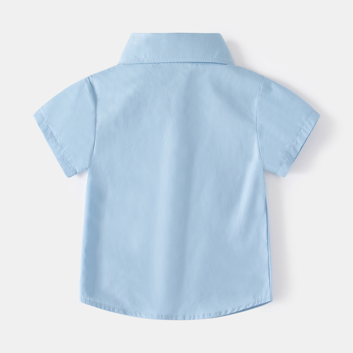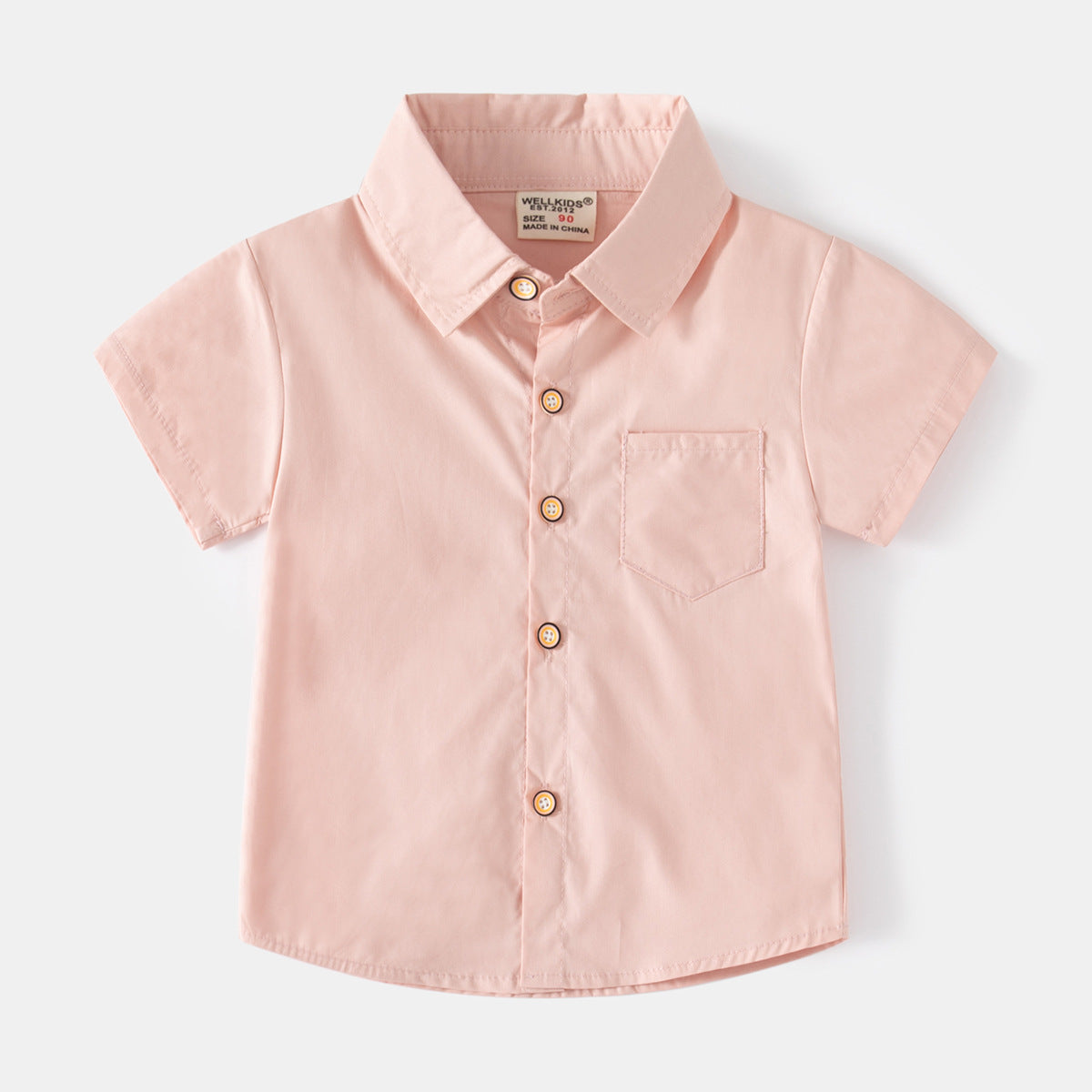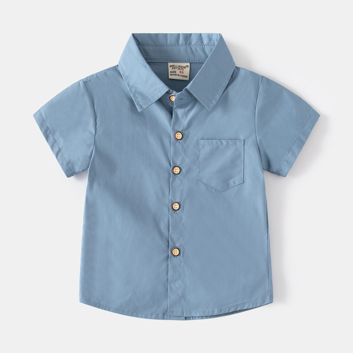 Boys' Solid Color Short-Sleeve Shirt, Turn-Down Collar, Summer Style