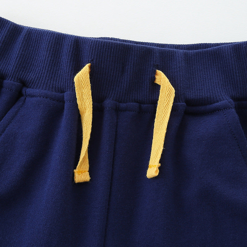 Boys' Summer Sports Shorts – Knitted Cotton, Cartoon Embroidery