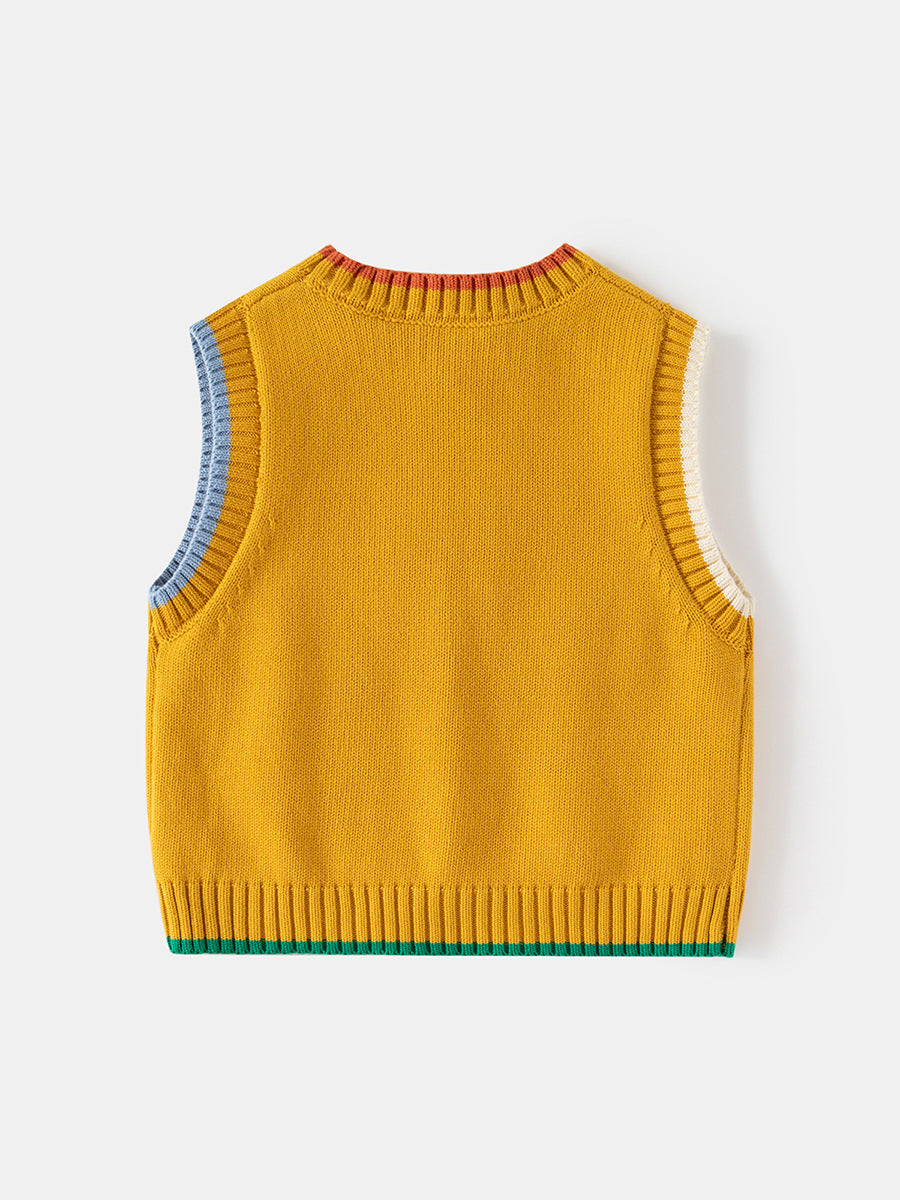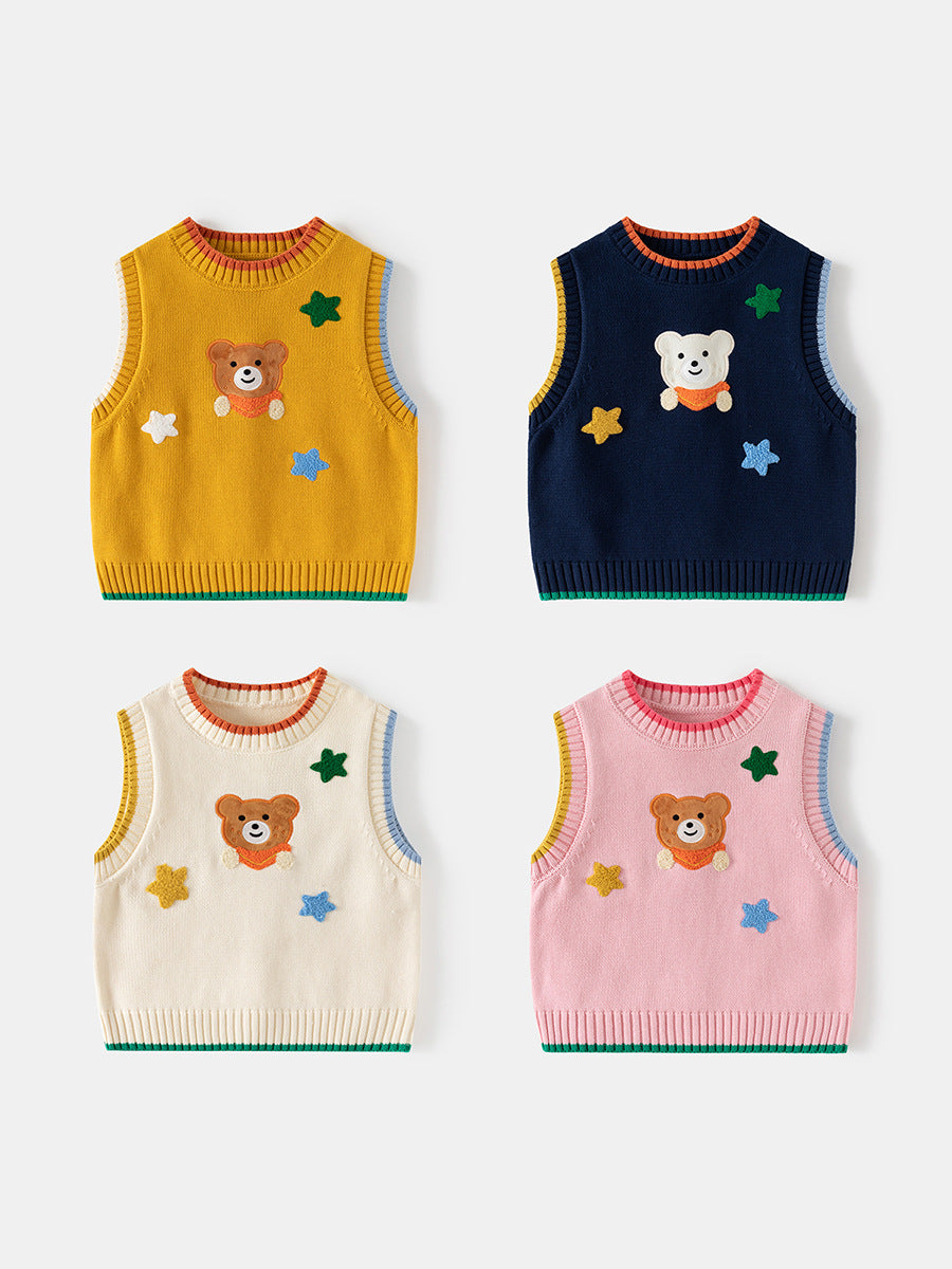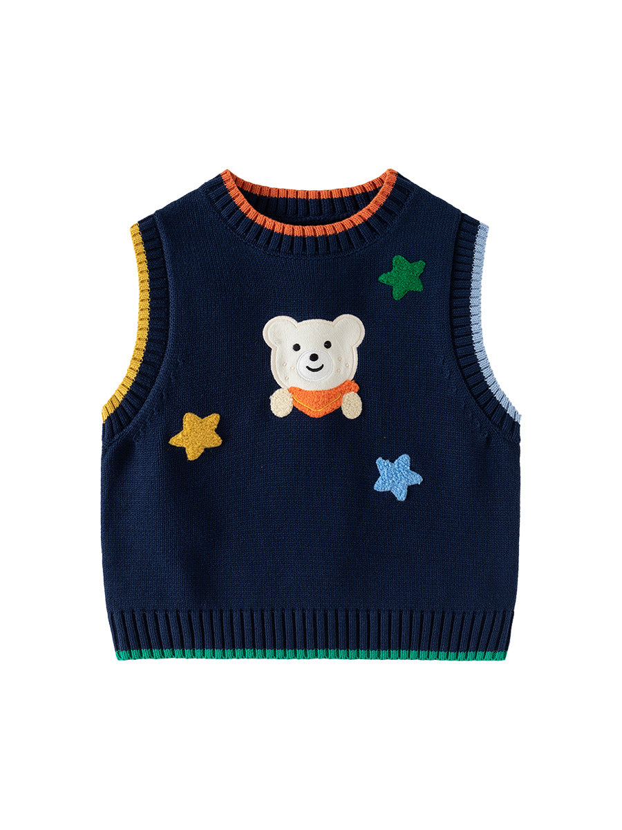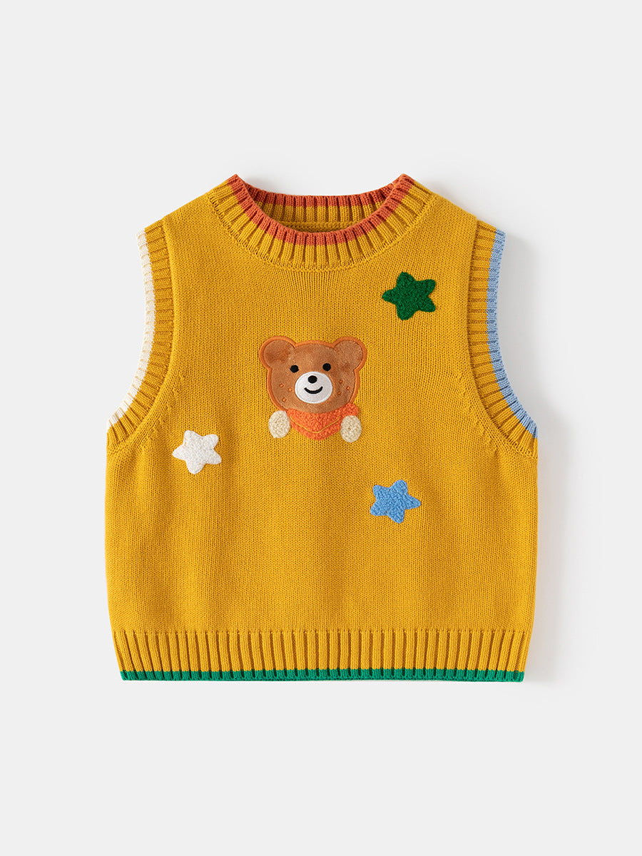 Boys' Cartoon Bear Knitted Vest Sleeveless Sweater