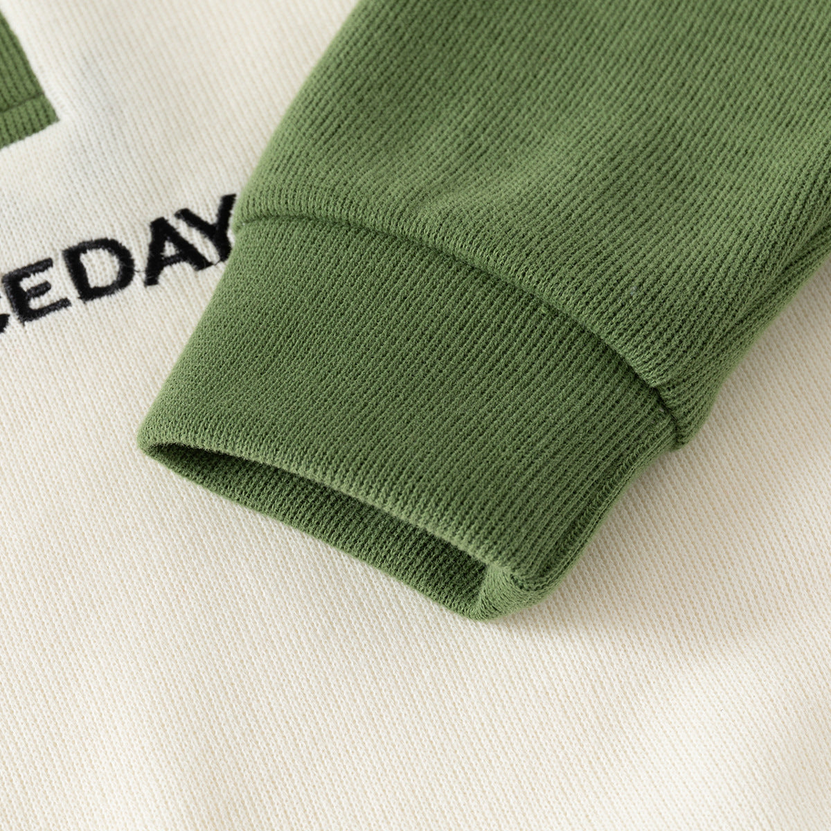 Featuring a solid color pattern with a trendy color-blocking element, this pullover ensures your child stands out with confidence. The long sleeves and pullover style provide ease of wear, making it a practical choice for everyday adventures.