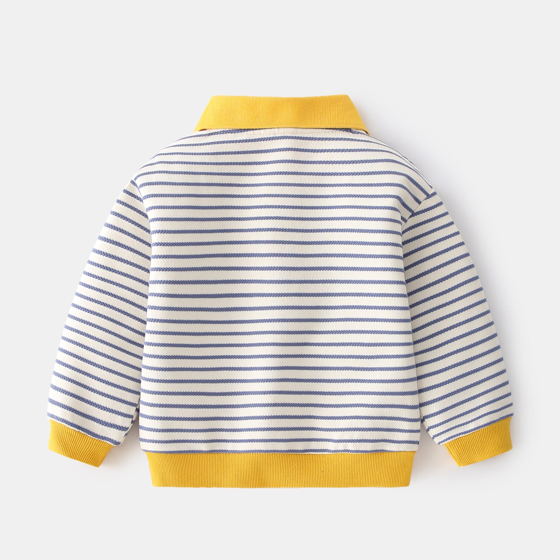 Crafted for comfort and style, this sweatshirt is perfect for young boys aged 3 to 8 years. Designed with a casual flair, it features a timeless stripe pattern that adds a touch of charm to any outfit.