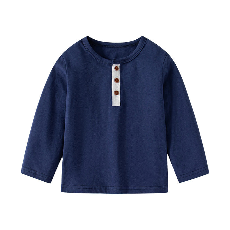 Boys' Cotton Long-Sleeve T-Shirt with Button Collar