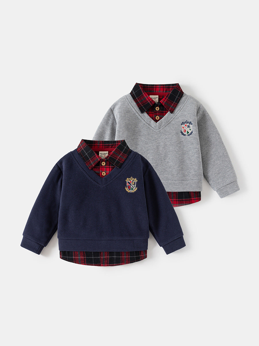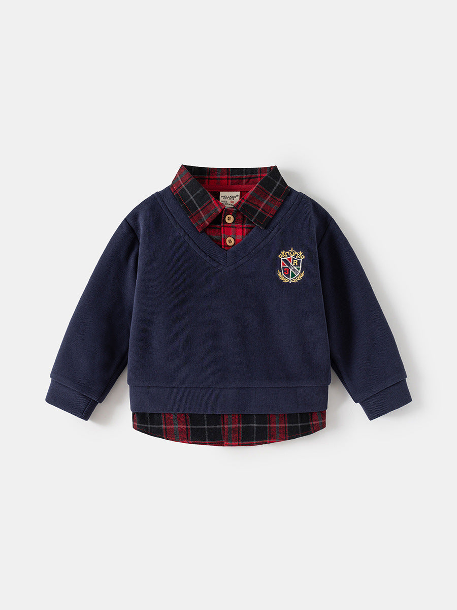 Boys' Layered Look Sweatshirt - Trendy Long-Sleeve Top for Kids 2025