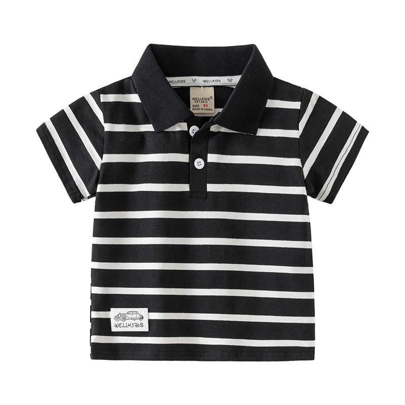 Boys' Striped Polo Shirt Summer 2025 Short Sleeve Top