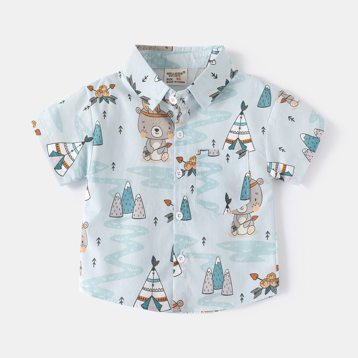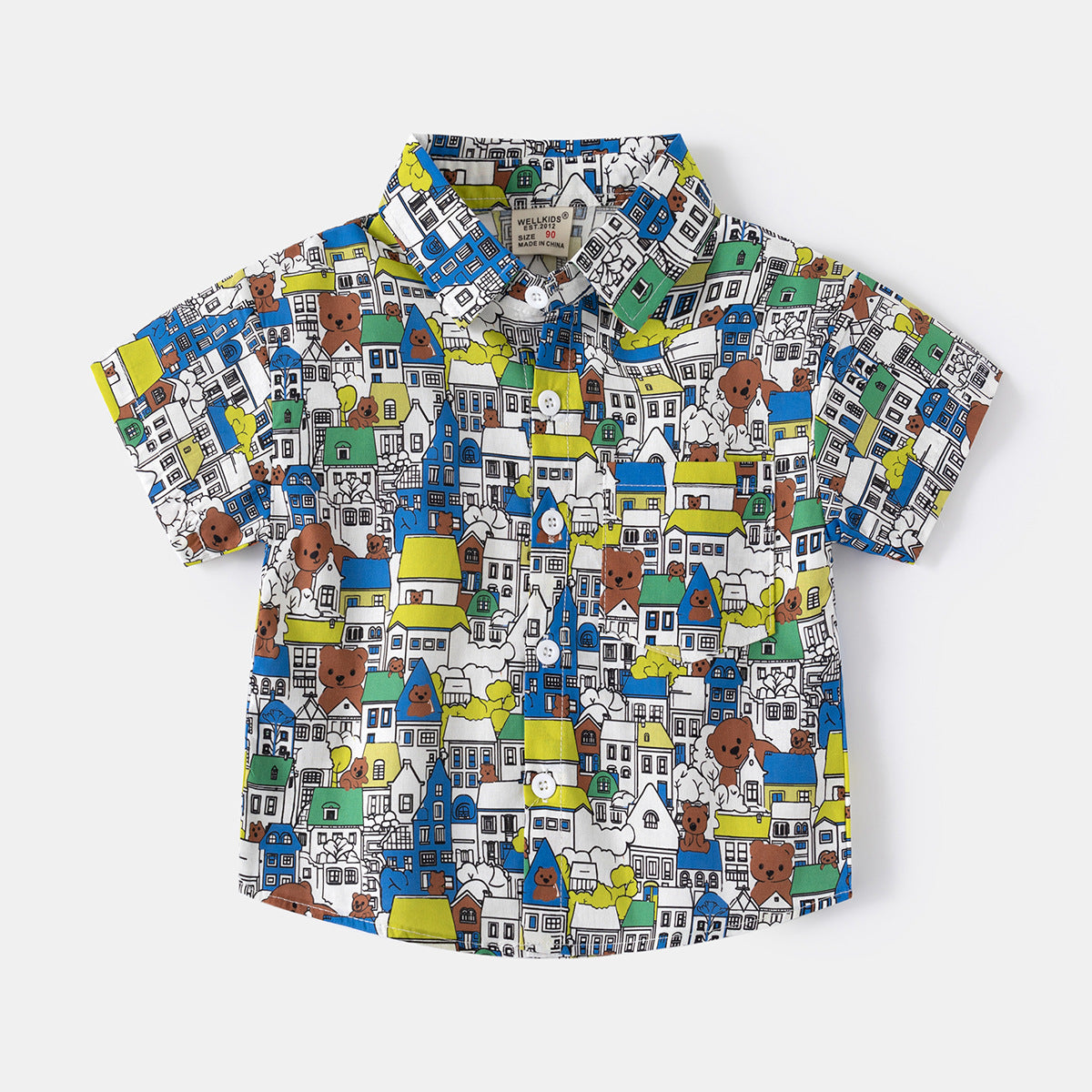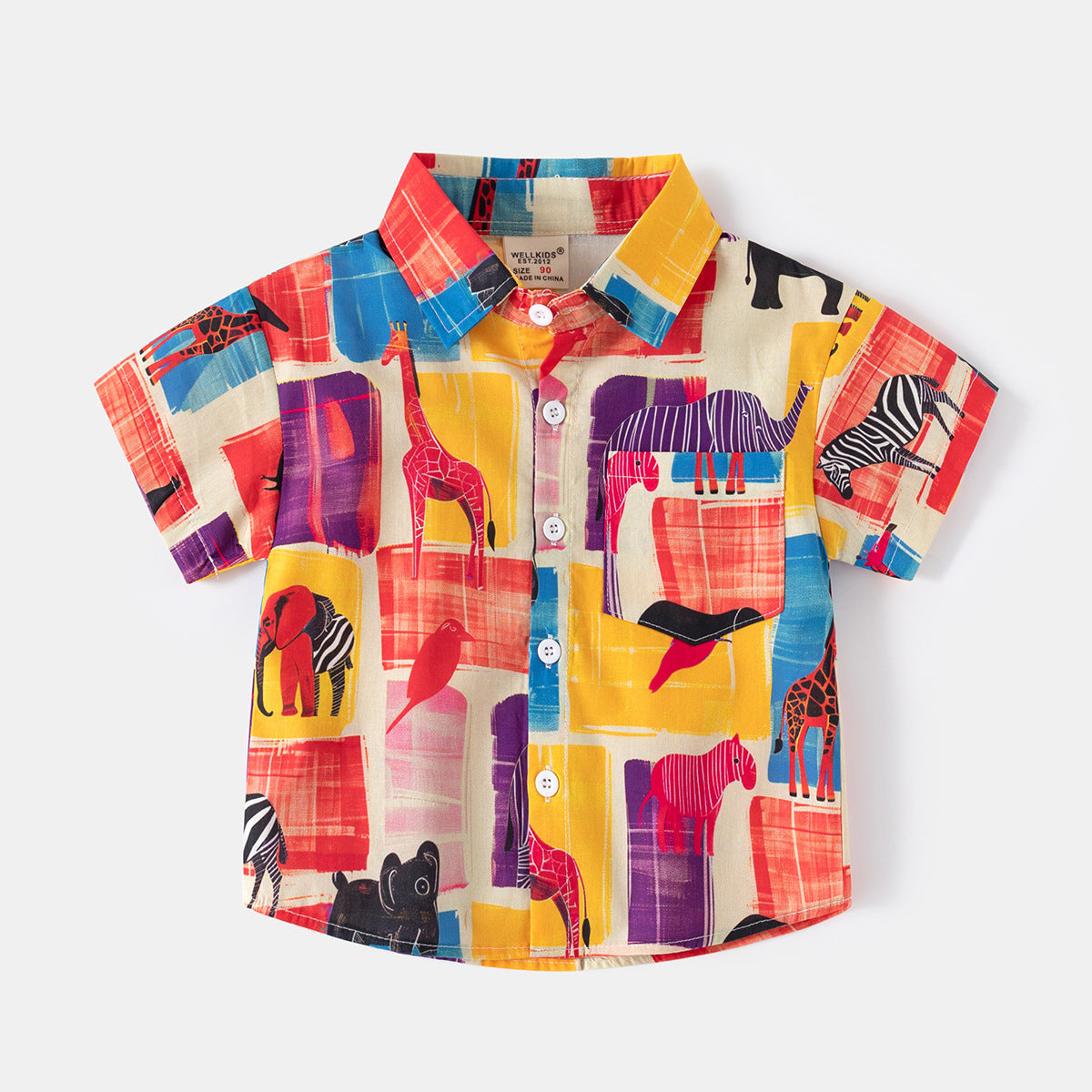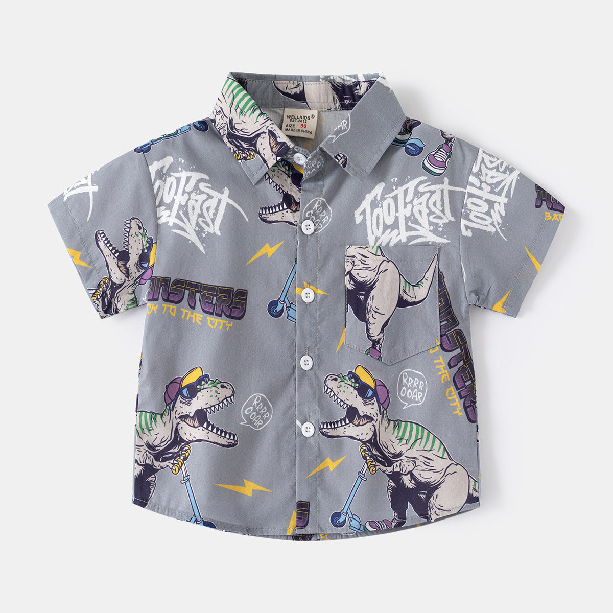 Boys' Trendy Digital Print Short-Sleeve Shirt 2024 Wholesale