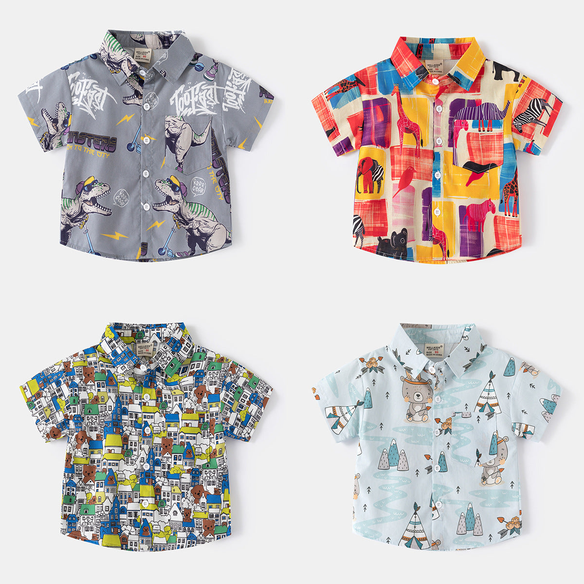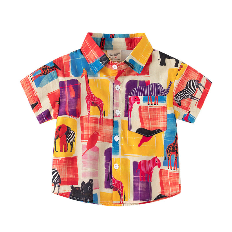 Made from 100% soft cotton, each shirt ensures a gentle touch on your child's skin, making them ideal for all-day wear. The turn-down collar and short sleeves offer a casual yet stylish look, perfect for any summer outing.